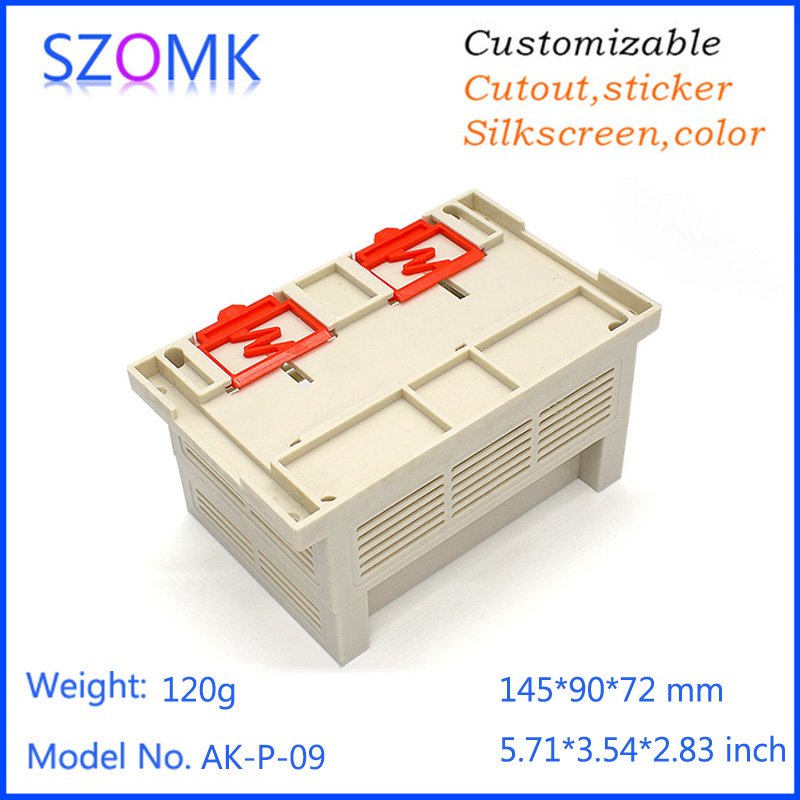 AK-P-09 145x90x72mm Kotak Plastik PLC Electronics Project Junction Box Case DIN Rail ABS Enclosure Control Panel 2 Dual Double Side Terminal Hole