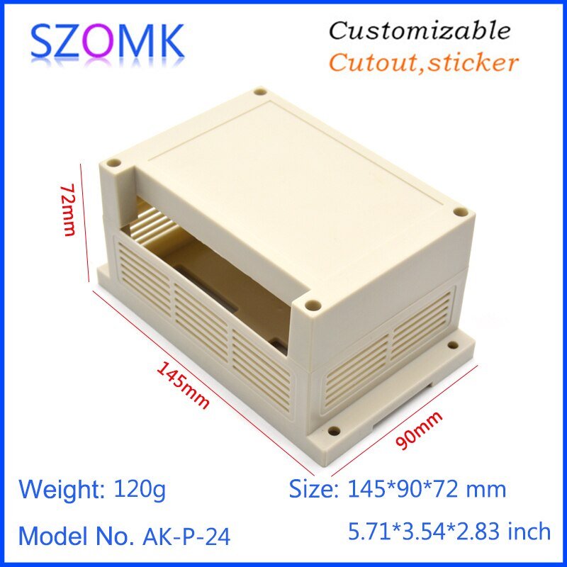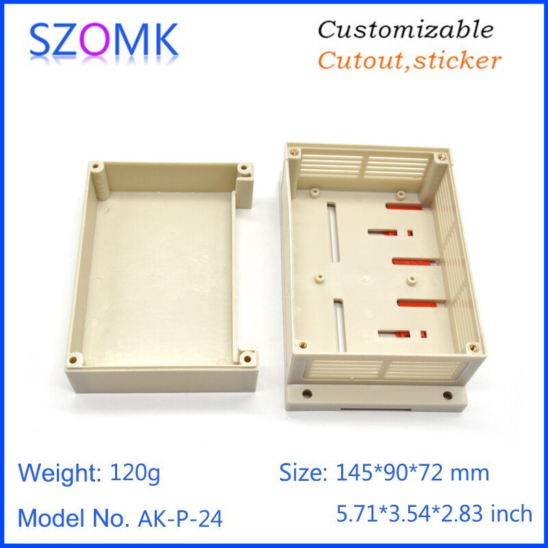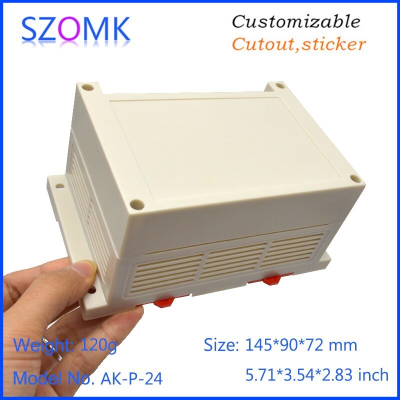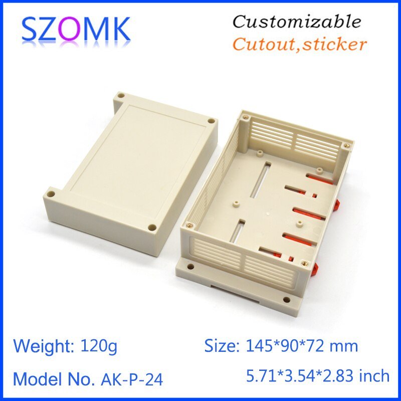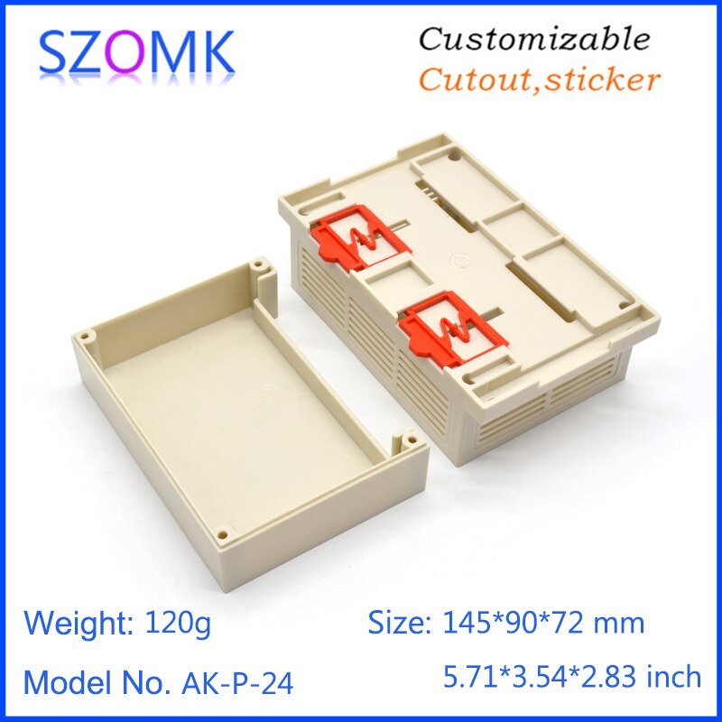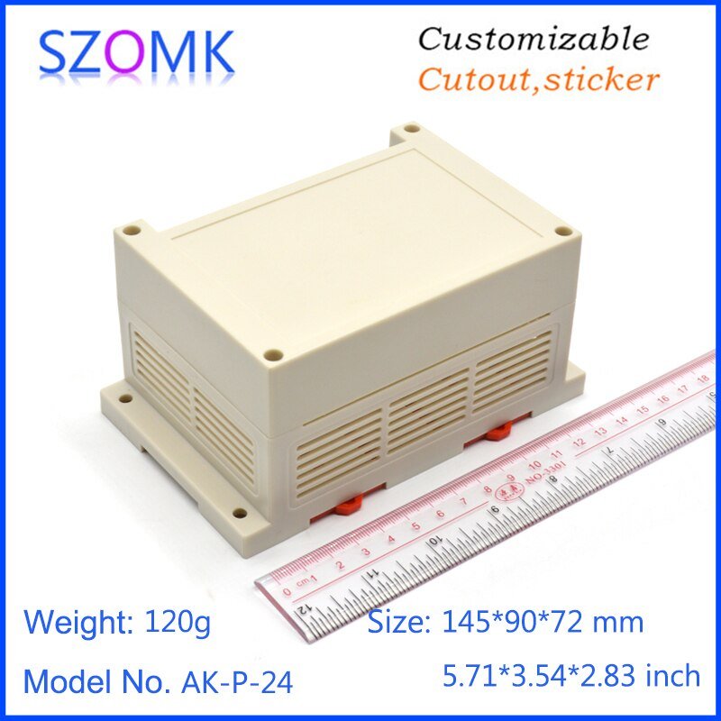 AK-P-24 145x90x72mm Kotak Plastik PLC Electronics Project Junction Box Case DIN Rail ABS Enclosure Control Panel 1 Single Side Terminal Hole